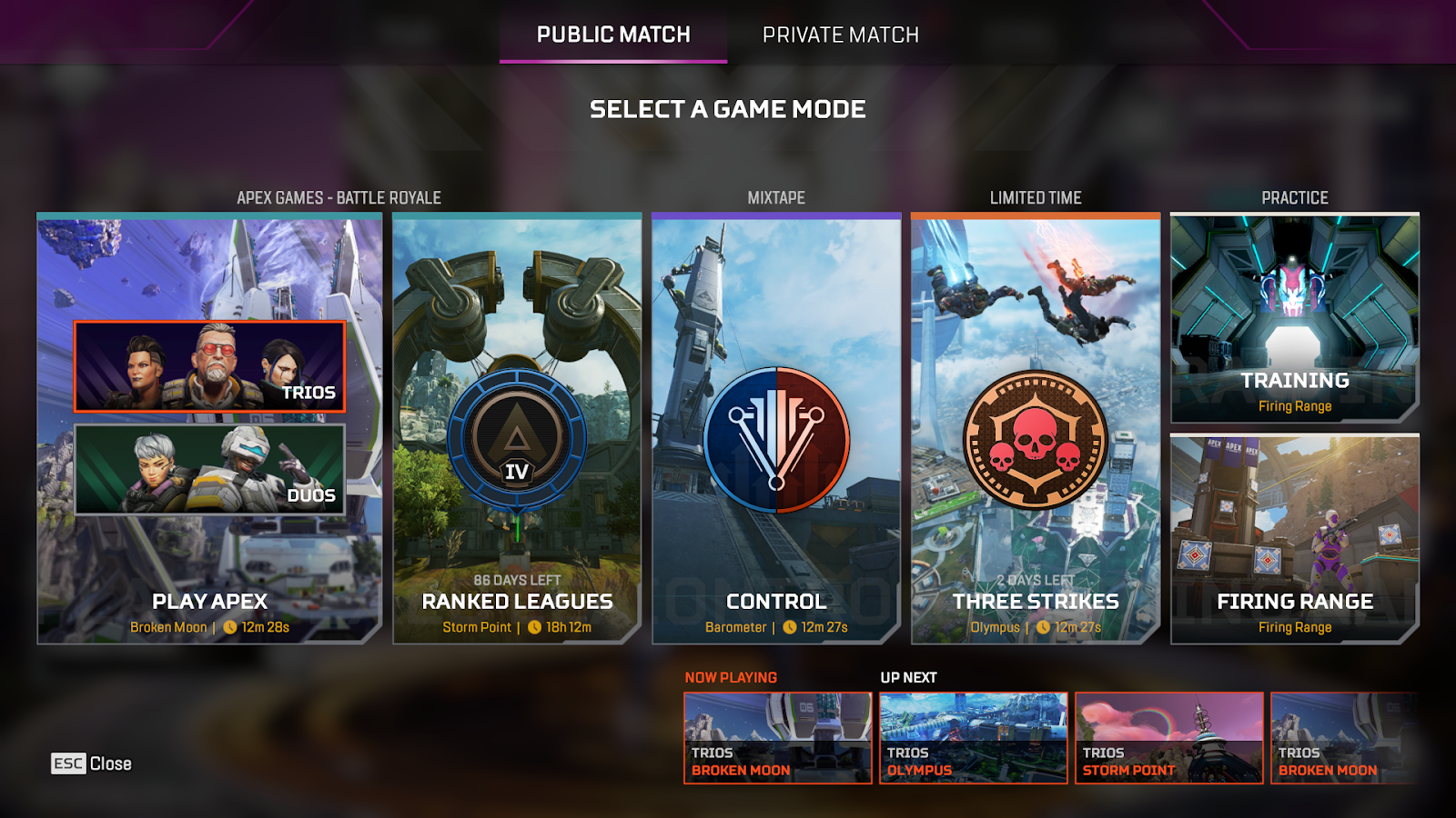 The map will determine at what pace your game will go. Olympus and King’s Canyon are relatively small maps, which means that the pace of the game will be faster and the fights more chaotic. You’re also more likely to get third partied in these maps due to their size.