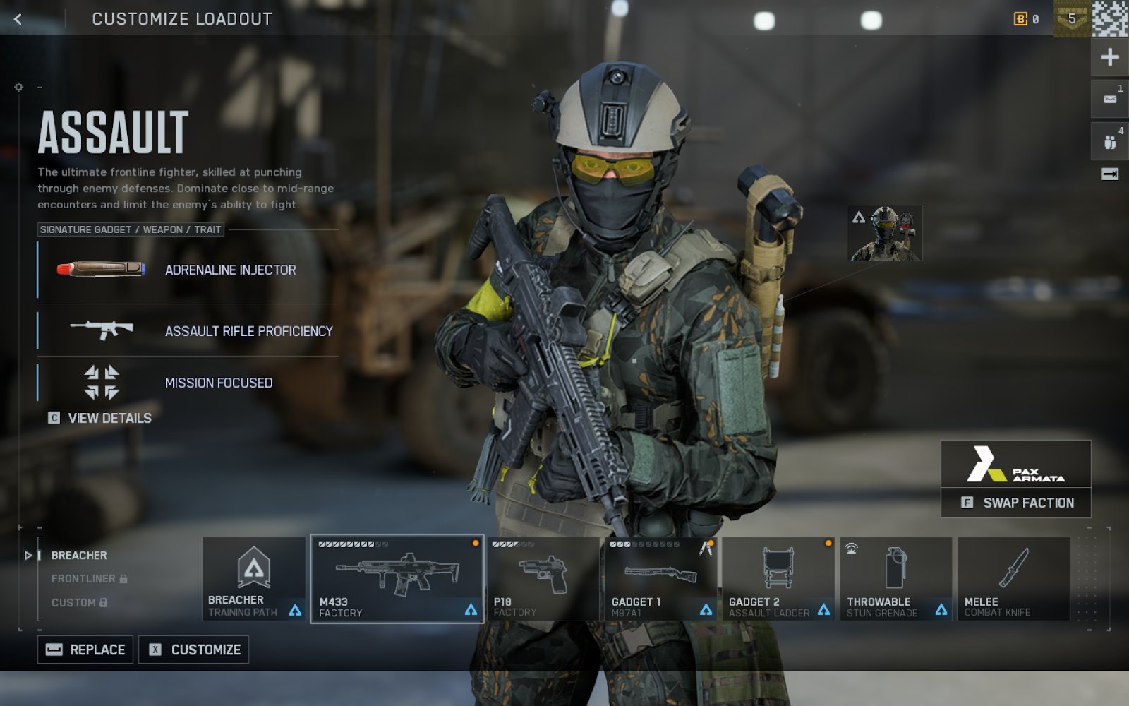 The Assault Class offers two training paths: Breacher and Frontliner. Breacher is more suited for breaching buildings and closed-off spaces. On the other hand, Frontliner is more geared towards taking the lead on the battlefield. Both TPs play similar roles but in different situations.