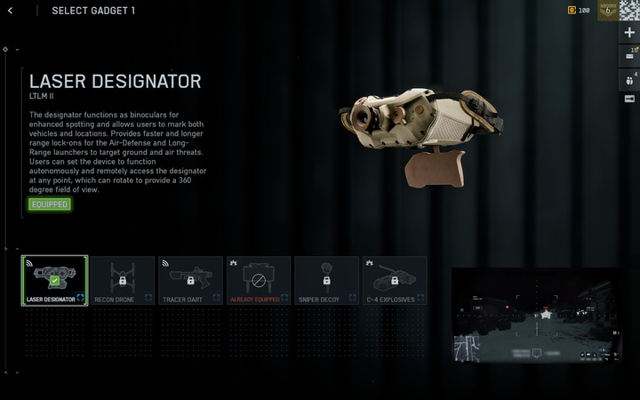 Signature Gadget: Motion Sensor – Deployable gadget that marks nearby enemies, vehicles, and gadgets for your teammates.