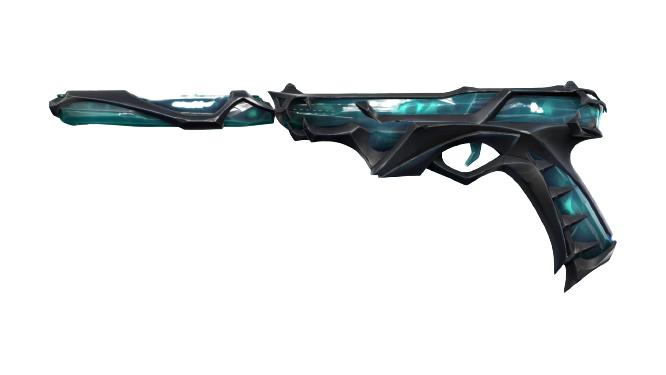 Unleash the darkness within with the Ruination Ghost skin. This hauntingly beautiful skin features a blend of ominous teal and black hues, adorned with intricate skeletal patterns.