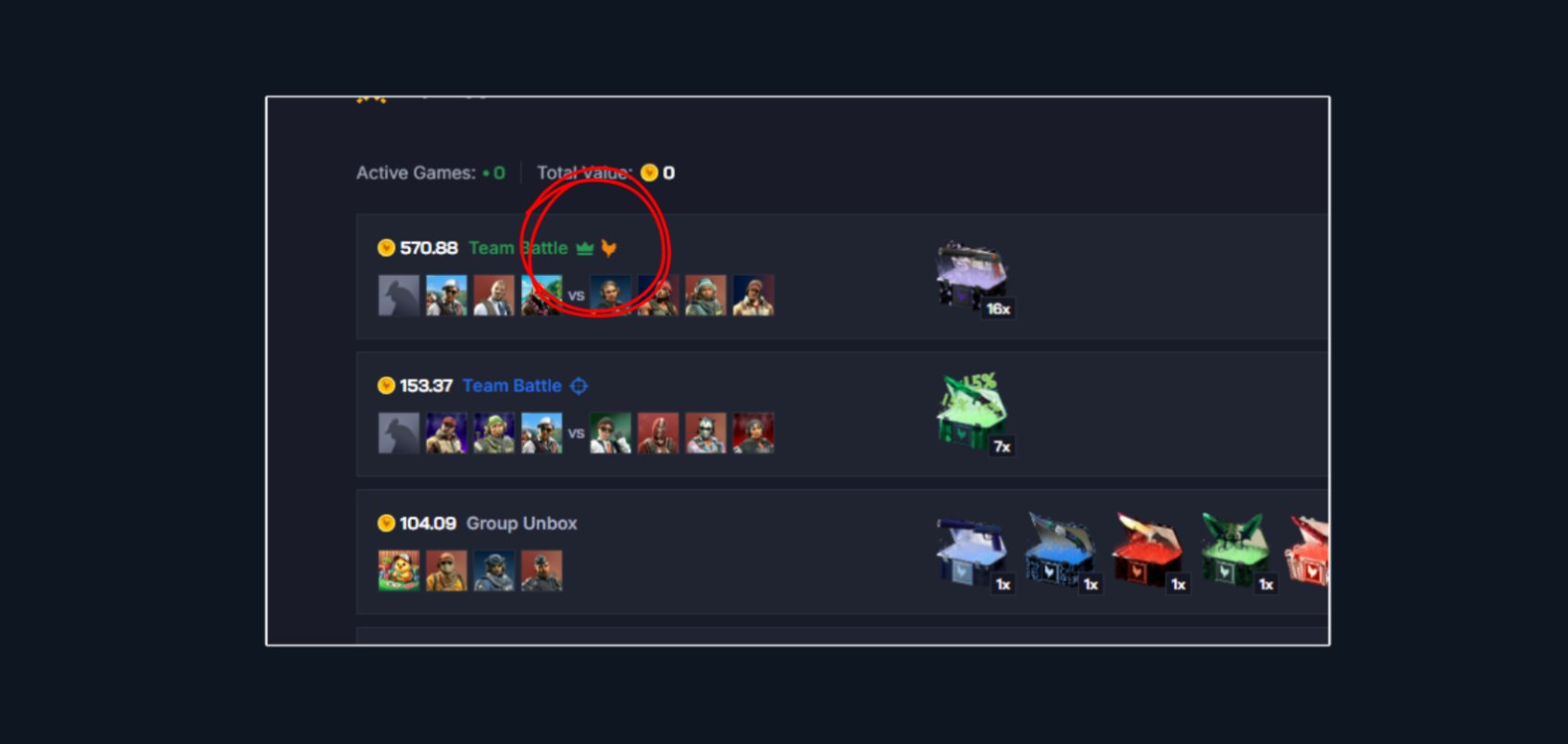 Team Battle In a Team Battle, players group up and try to win the game in teams. In a basic Team Battle, the team with the highest unboxed value wins the pot. You can play 2v2, 3v3, or 4v4.