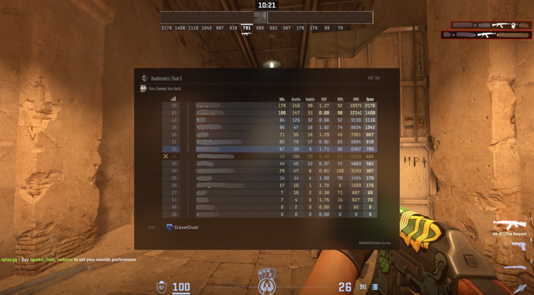 Lastly, it also has a lot of casual players. There’s nothing wrong with that at all, but since it’s an official Valve gamemode, there’s tons of players who want to ‘win’ the DM by cheesing with automatic shotguns and the likes. In community DM servers, the vast majority of players are just there to improve and warm up, not necessarily to ‘win’ the match.