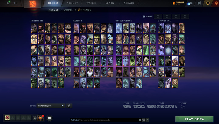 If you want to ease into the game, start by familiarizing yourself with what each hero does. In the ‘Heroes’ section, the game will show you the complexity level of each hero. Begin with those that are low complexity and easy to learn. You can also sort the heroes according to their roles and attributes.