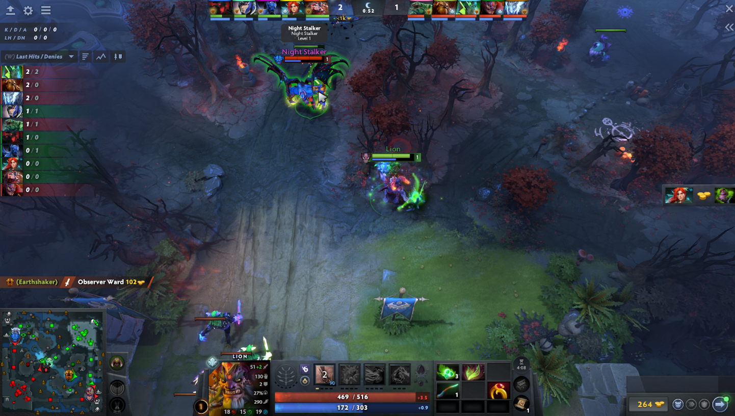 If you prefer to help your teammates and want to be involved in more map movements or rotations, start with the ‘Support’ role. The support role is the easiest role to pick up as they do not need to focus too much on gold or item progressions as much as the other core roles. Instead, they rely much more on map awareness, placing wards for vision, helping your teammates survive fights, and disabling their enemies. Heroes like Lion, Lich and Crystal Maiden are great picks for beginners. They offer crowd control spells, are long ranged, have easy-to-understand spells and provide big team impact.