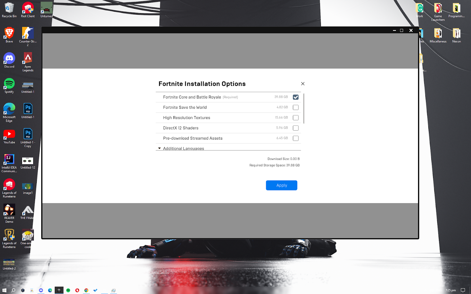 With that, all the remnant Fortnite files will be removed and you should be ready for a clean install. When you do go to reinstall Fortnite, you’ll want to follow some steps. Firstly, download the game in a drive with plenty of extra storage. An SSD is preferable, but a good HDD with enough space will work as well. When you go to install it, it will show some install options. For the best performance, only check Fortnite Core and Battle Royale. All the other options are mostly eye candy.