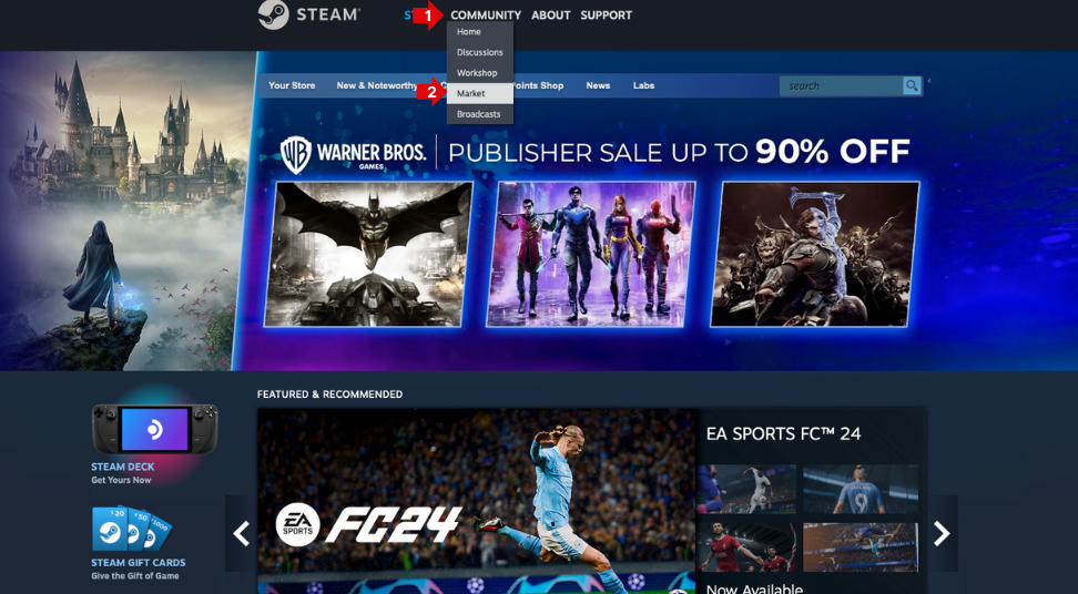 If your account is ready to use the Steam Community Market, getting into the community market is simple: