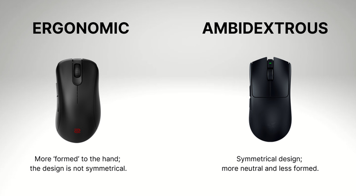 As we’ve established, there is no objective ‘best shape for gaming’. But certain shape designs do offer different aiming sensations. In the next section, we’ll give some pointers on mouse shapes. Do note that we are painting with broad strokes here, however.