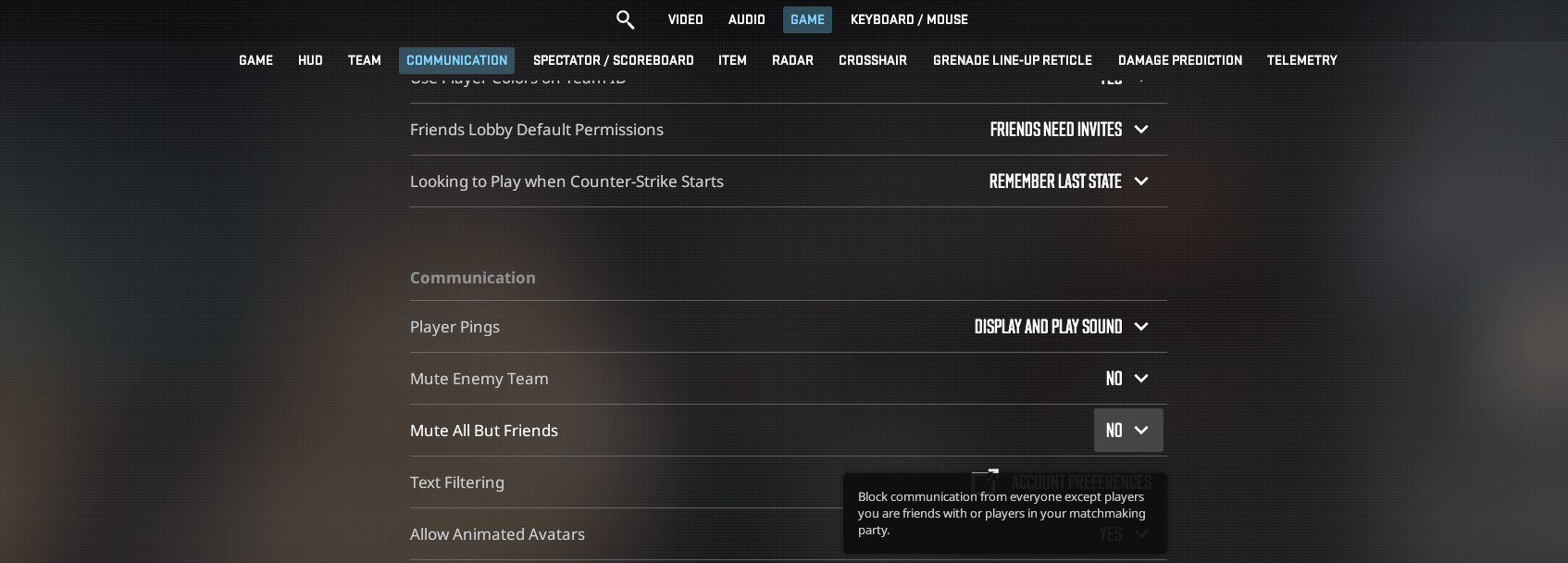 If you also want to mute all of your teammates by default (something we don’t recommend) you can also select Yes next to Mute All But Friends.