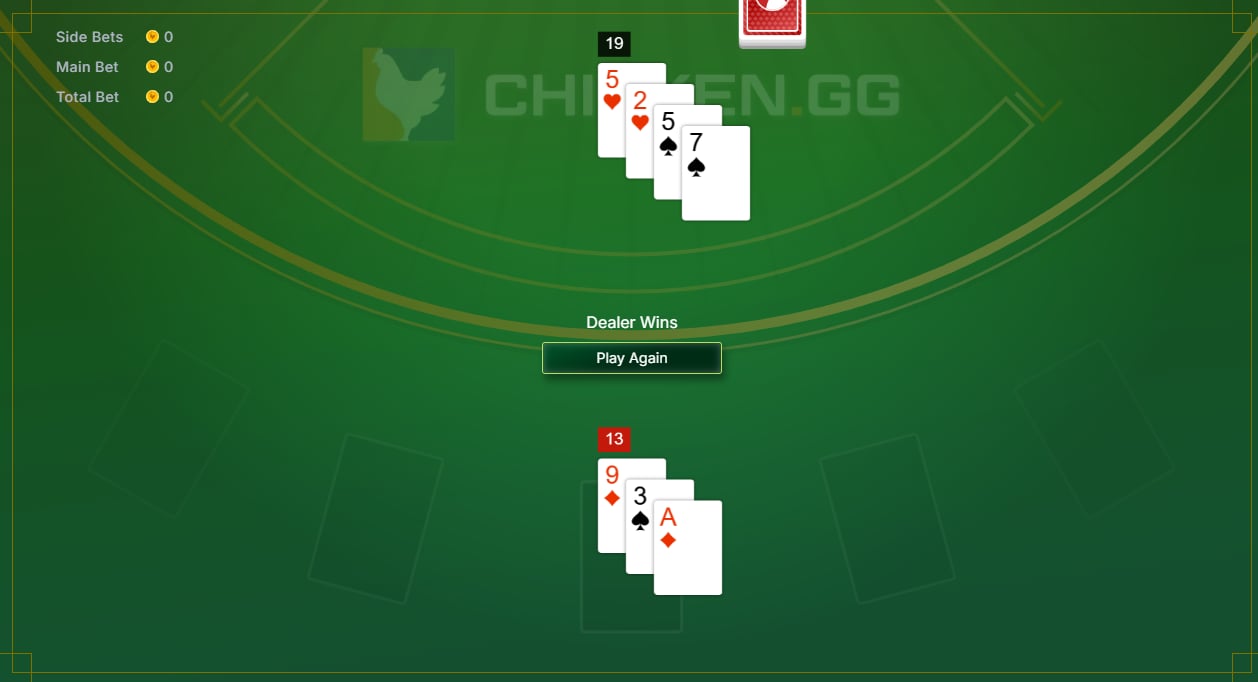 The Goal of BlackjackOn Chicken.gg, the objective is the same as in any traditional Blackjack game. You want your hand to be closer to 21 than the dealer’s hand without going over 21. Landing on 21 gives you the highest possible hand. If you exceed 21, you lose immediately. If the dealer exceeds 21, you win. In the event that both hands stay under 21, the higher total wins. You always play before the dealer, which gives you a bit more of an influence over the game than you would have in most casino-style games.