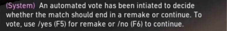 - A vote will happen, and if all four remaining players vote ‘YES’ (F5) the match will end and players will be sent back to the lobby