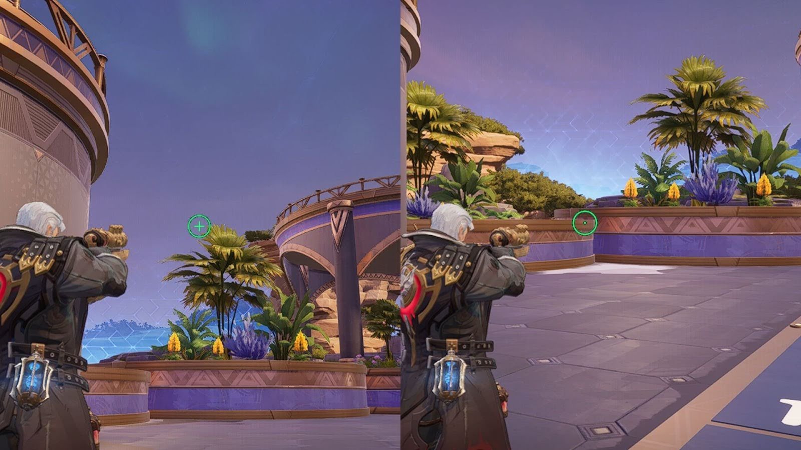 For characters such as these, bigger crosshairs work better since you have to take the travel time of the projectile into account. Having a larger crosshair can help you get a quick visual reference to how far ahead of the intended target you need to shoot. A simple circle and dot crosshair will work with most characters, but you can tweak it further to your liking.
