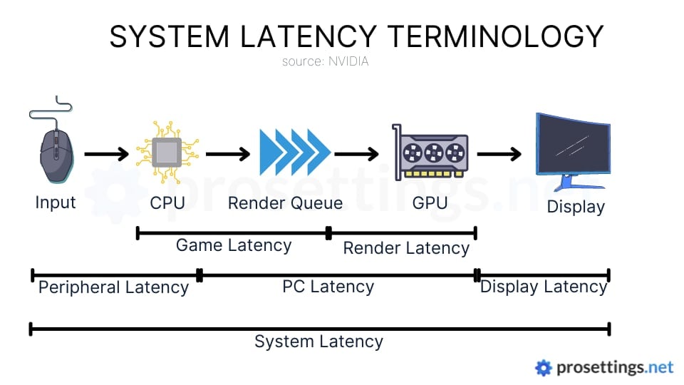 So, you have pure PC latency, including the game latency and the rendering latency. This can be reduced in two ways. The first is increasing the FPS the game runs at, which depends on how powerful your system is for a particular game. The second way would be to optimize the pipeline between the CPU and the GPU.