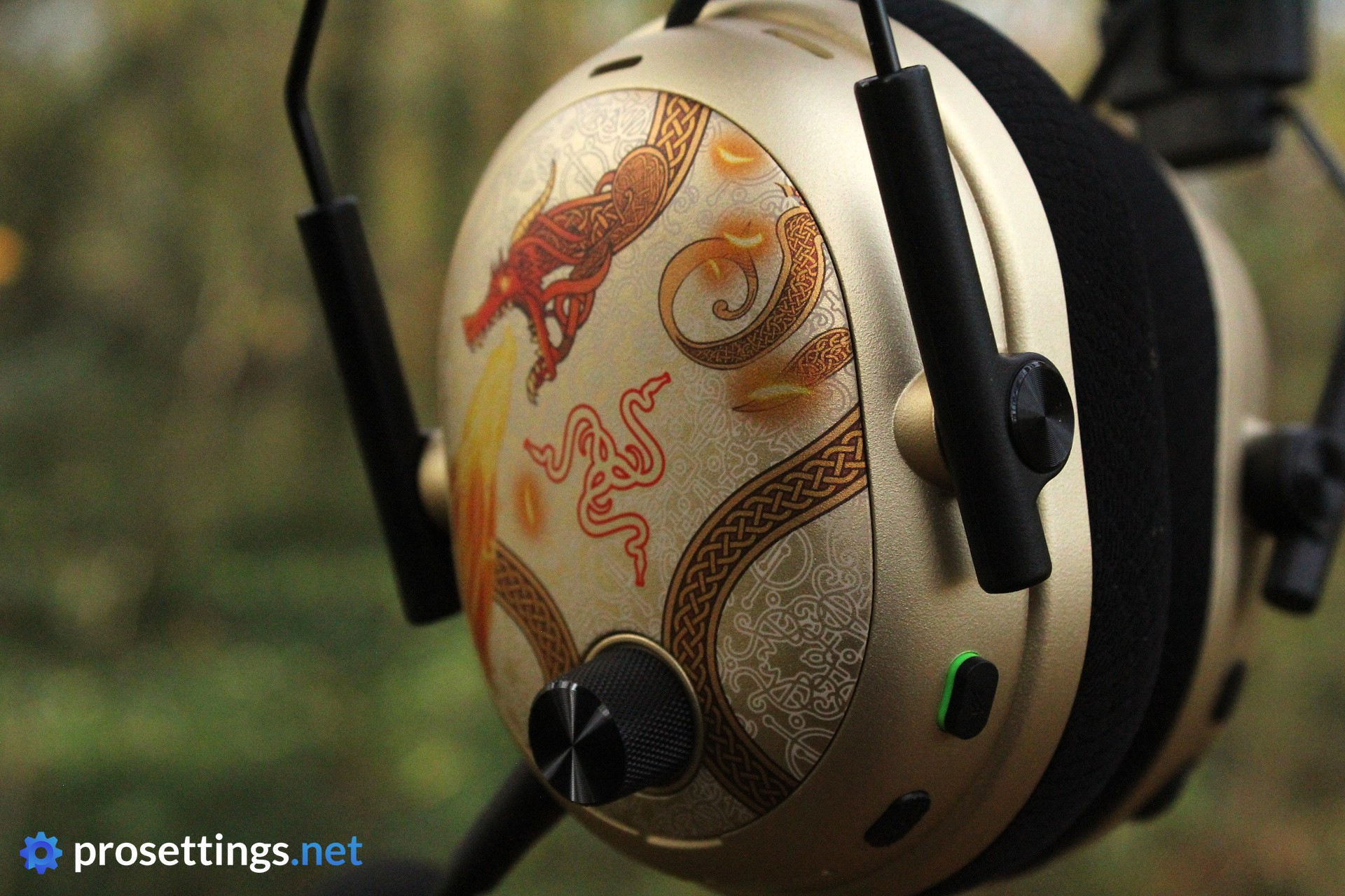 The designers at Razer really nailed it here, if you ask us. The ear cups have a textured, metallic finish to them, which makes the iconic Dragon Lore art look right at home on the headset. Had they gone with a standard plastic ear cup with simple, printed-on artwork, it would’ve made the headset look tacky. Here, it almost looks like a beautiful medieval coat of arms display piece was directly applied to the ear cup.