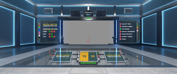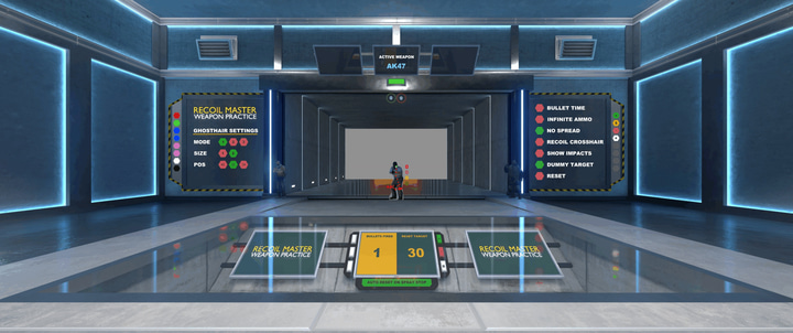 The best map to do so is Mr.uLLeticaL’s Recoil Master – Spray Training map. This map has tons of options for you to master the spraying pattern of every single weapon in the game. The spraying pattern is clearly displayed above the practice wall, you can have a dot on said wall trace the spraying pattern to practice muscle memory, you can have the map spray the weapon for you to visually see how the bullets fly, …