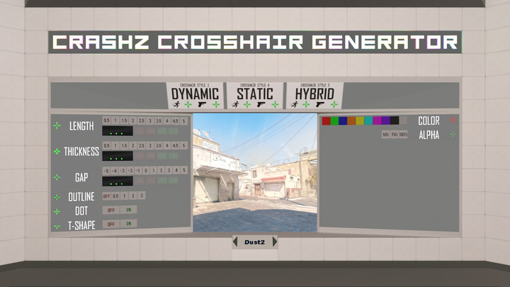 For this reason, crashz’ Crosshair Generator is one of the most popular Workshop maps to ever grace the game. Here, you can do anything you’d want to do that’s related to your CS2 crosshair, and it’s an incredible tool for when you’re making your first crosshair or you want to spice things up with a new one.