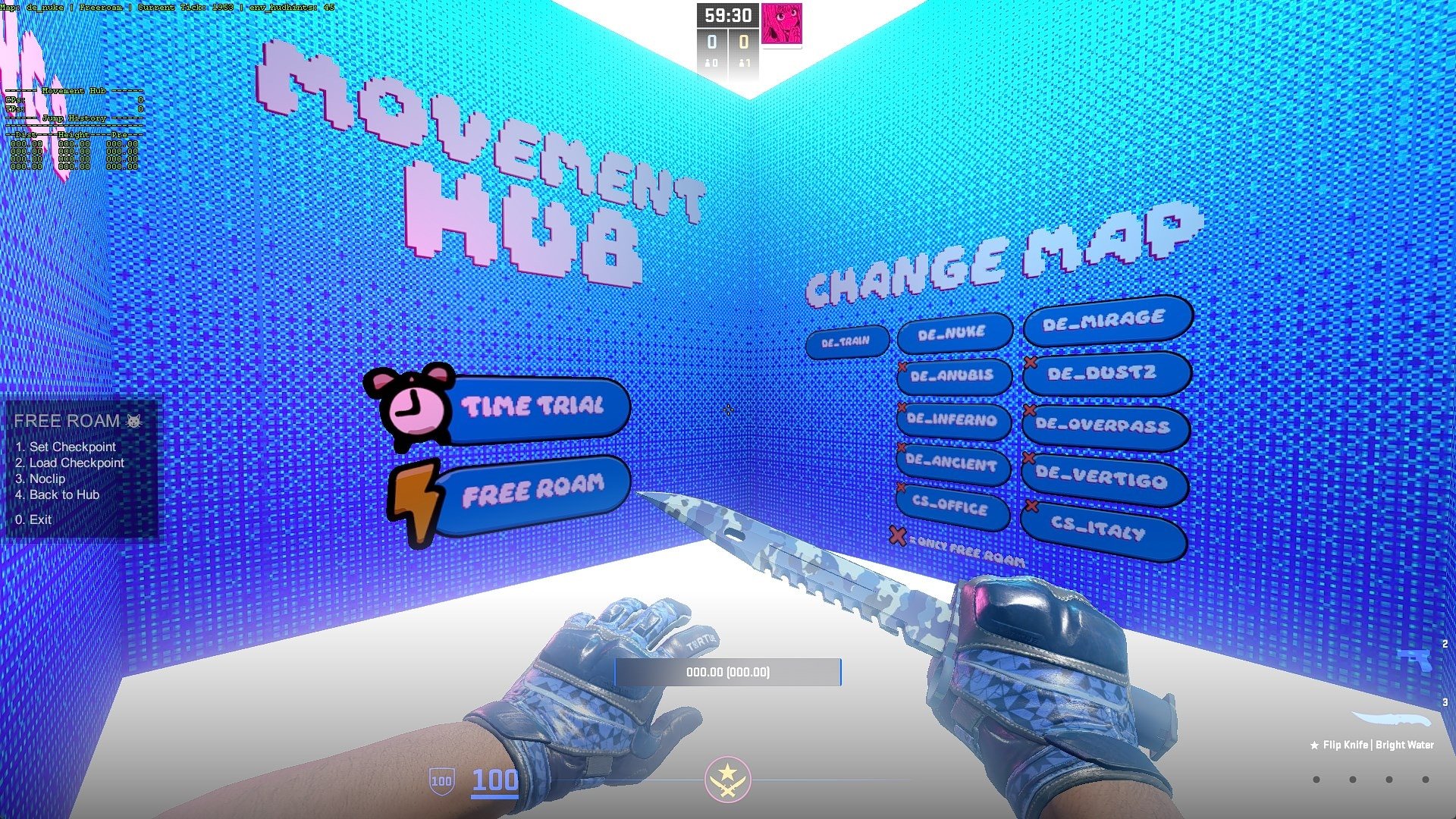 There are tons of maps out there to train your movement, but a good one to get the basics down is Movement Hub by i like cats. This one has all of the current maps in one hub, so you don’t need to download separate files for each individual map. It also has handy guidelines and examples, and it has the most common skill jumps for each map, meaning that you’ll learn useful tricks with this map.