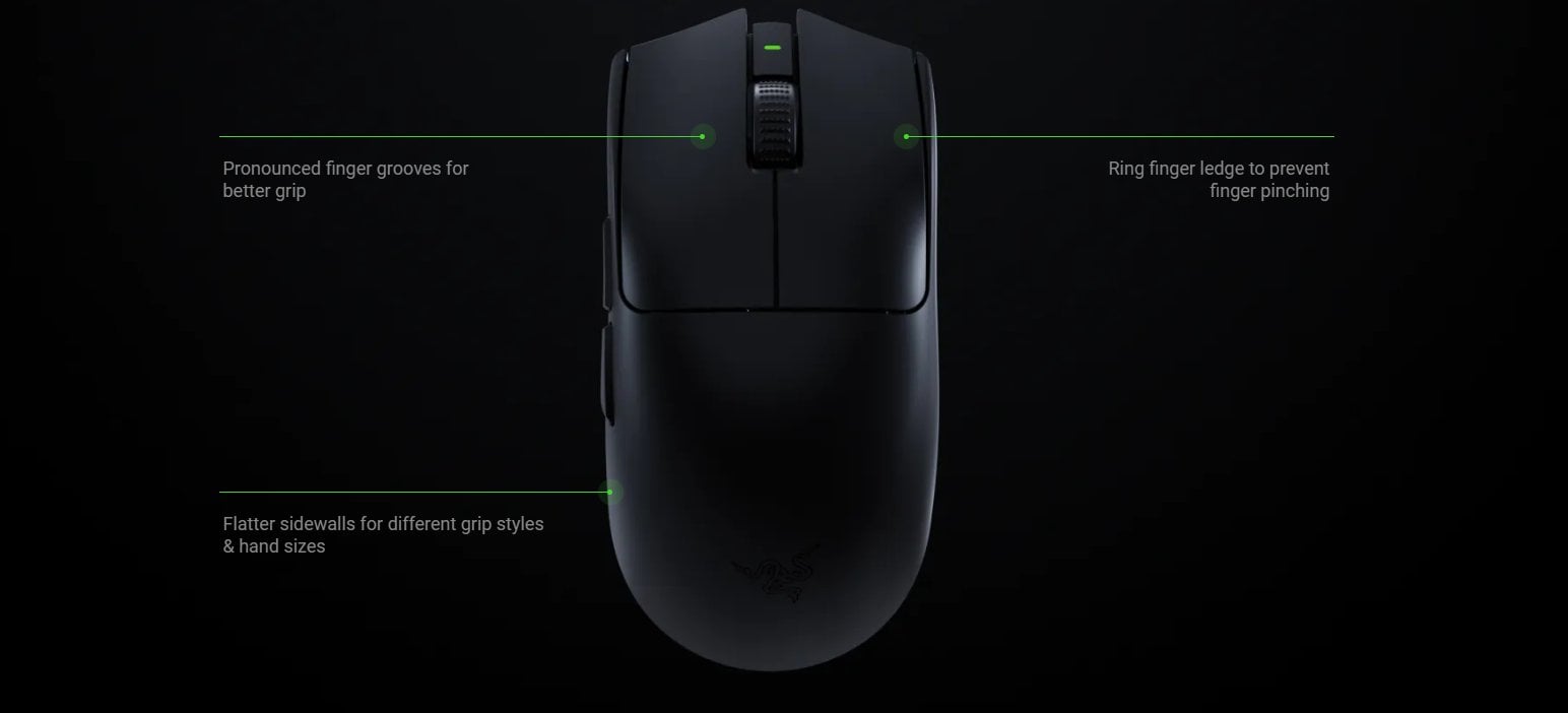 After closely working together with numerous active pro gamers, Razer decided that moving away from the flatter shape of the earlier Viper models was the best course of action. Instead, Razer went for a boxier, more neutral shape that would also allow users to hold it comfortably with a larger variety of grip styles.
