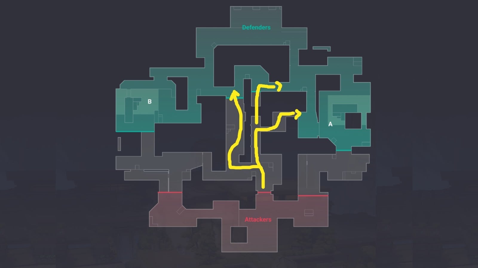 As for the layout of the map; as we mentioned Abyss is a three-lane map. This includes a middle, A site, and B site. We’ll go over each below and their layouts.