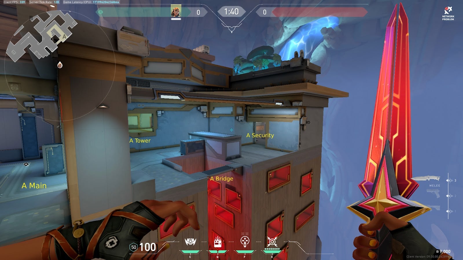 Similar to B site, A site is also quite standard layout-wise. The attacker’s entry point is called A main, defenders enter from A security. A tower is a vertical point that also connects to the middle through a breakable door. There is a rectangular box in the middle to provide some cover and a dangerous bridge on the edge of the site. You can plant the bomb there which is going to be extremely difficult for defenders to defuse. You can also knock people off this bridge using Raze satchels or other utilities.