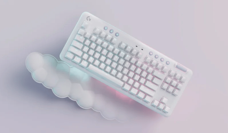 The G715 is a TKL keyboard that’s very much focused on dreamy aesthetics, and you can take that quite literally as it comes with a cloud-shaped wrist rest. Logitech sells a bunch of customization packs for this board, meaning that you can change the top plate as well as the keycaps so that the board fits your personal aesthetic, and that combined with the RGB lighting that runs across the bottom of the board makes this a sight to behold, if you’re into that type of look.