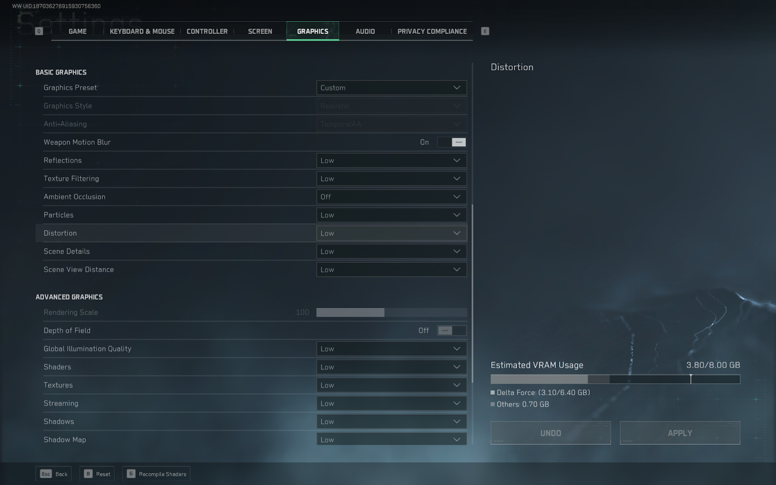 | Graphics Preset | Custom | – |