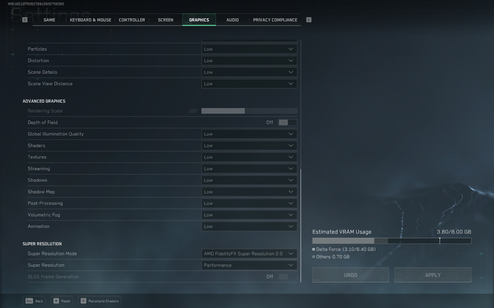 We will be taking a performance-first approach to this, meaning turning down visual quality to reduce the load on the GPU and allow it to render more frames. This doesn’t mean your game will look terrible; it just won’t be the highest visual quality. Delta Force still looks great even on low settings.
