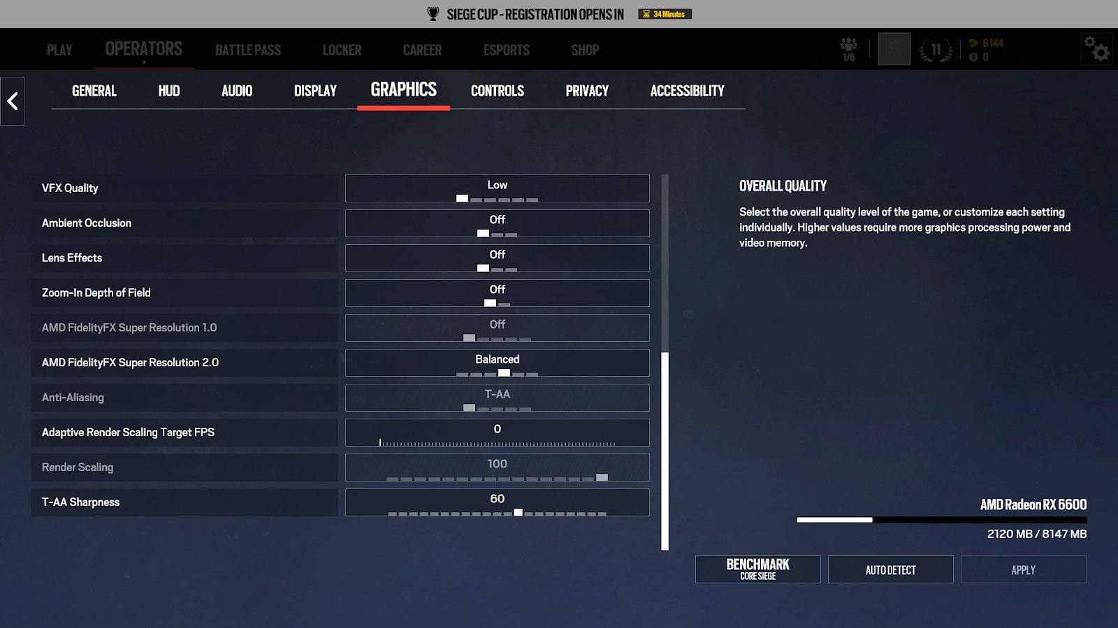 | VFX Quality | Low | Controls how particles, decals, and debris look. Mostly an eye-candy setting. |