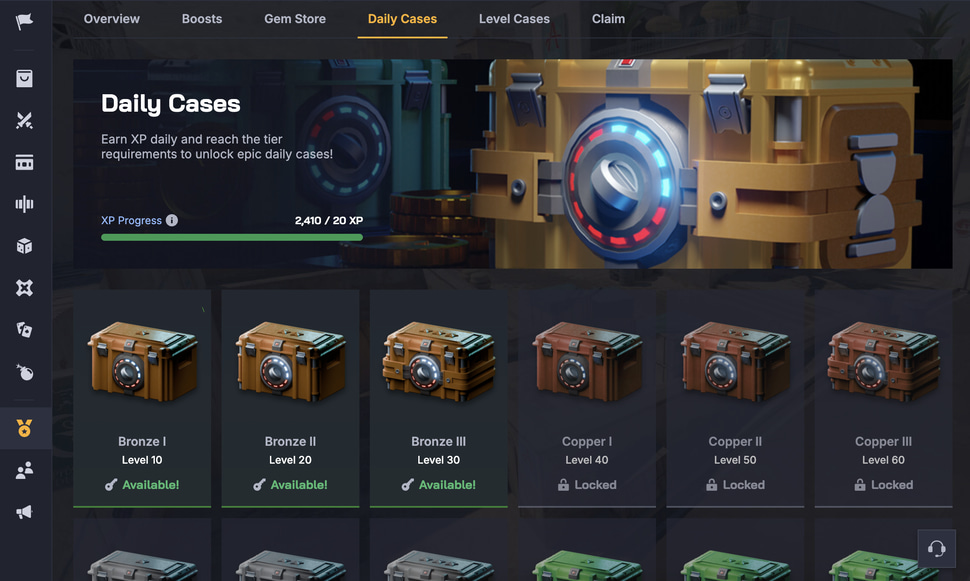With every bet you place, you receive a couple of gems (dependent on how much you’ve wagered). These gems can then be used to open specific gem cases, which have better potential rewards than most of the free cases. You do need to be an active player in order to keep using the gems though, as they are a finite resource. If you stop playing and you’re out of gems, there’s no way to earn new ones other than by playing games.