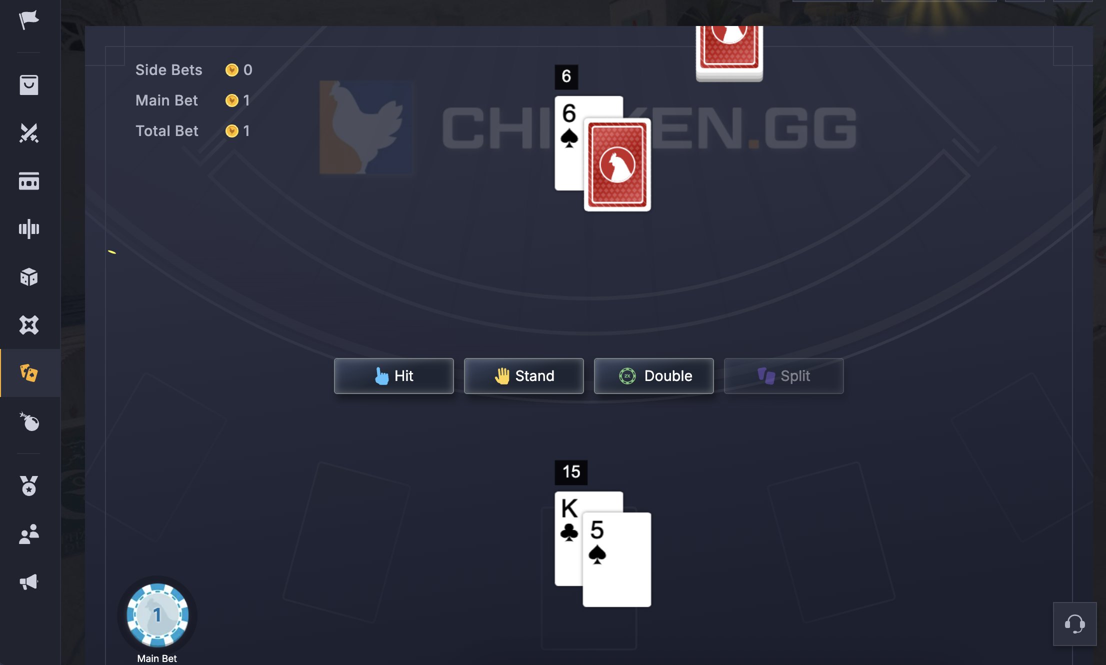 Chicken.gg is one of the few CS2 gambling websites that offer blackjack, which is a cool feature if you ask us. Blackjack is a much more interactive game than most other games on these types of websites, so it’s cool to see it included here. Blackjack is a pretty complicated game with lots of extra rules, so we can’t explain everything here, but the game runs well and we had fun playing it.
