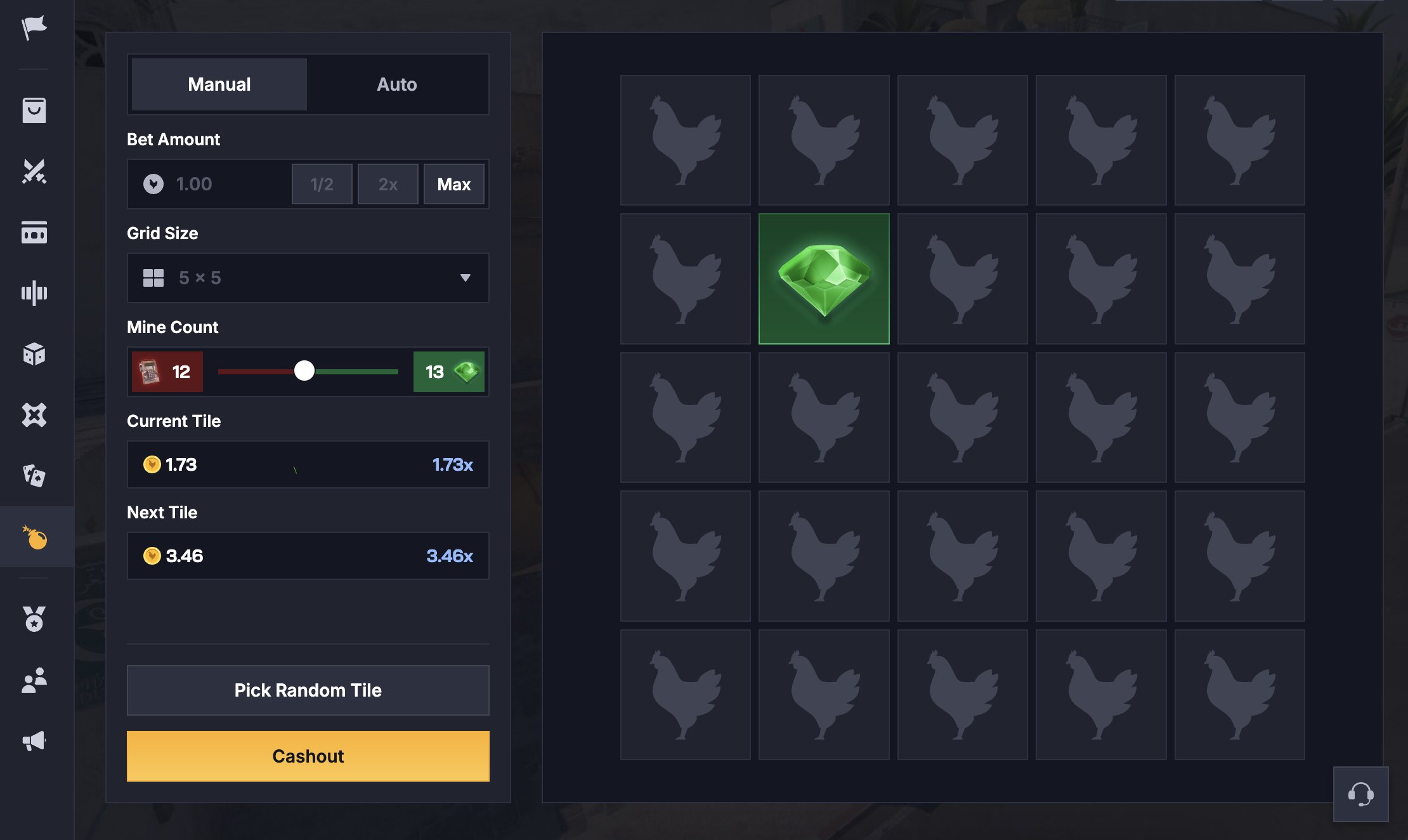 We had no issues navigating or understanding Chicken.gg. Helpful features like case volatility are user-friendly, and we felt comfortable navigating through the website. Other than gems (which only have one purpose which is clearly explained on the gem case section) there are no special tokens, limited or otherwise, that you have to keep track of.