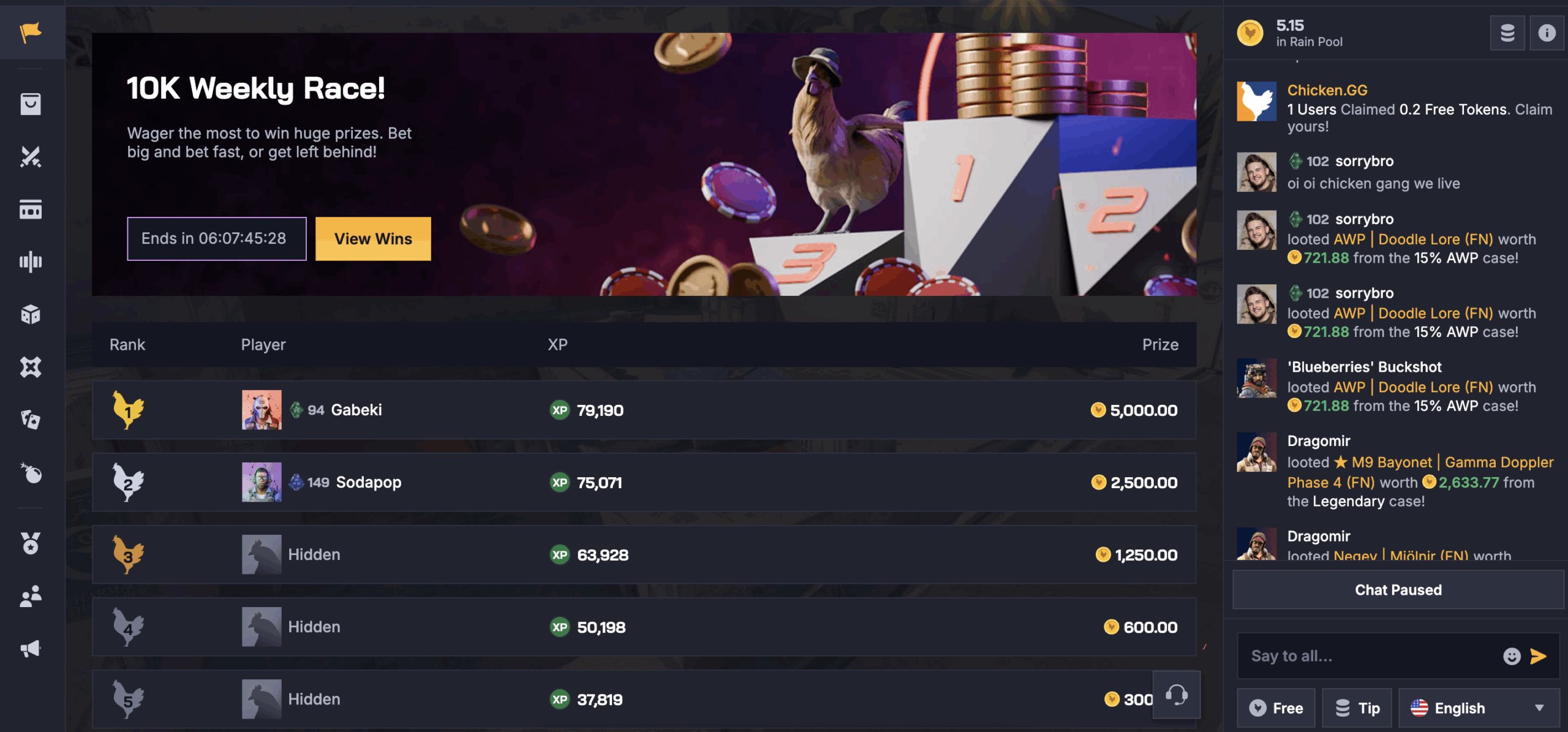 Chicken.gg offers a lot of free rewards and extra goodies, but you have to be a paying and playing member to have access to most of those. As such, it’s not the best website for players who aren’t looking to spend a single dime. Once you get the ball rolling and have wagered a good amount of money, you can definitely rack up the rewards, but this will be a very long grind if you’re not willing to put in any money.
