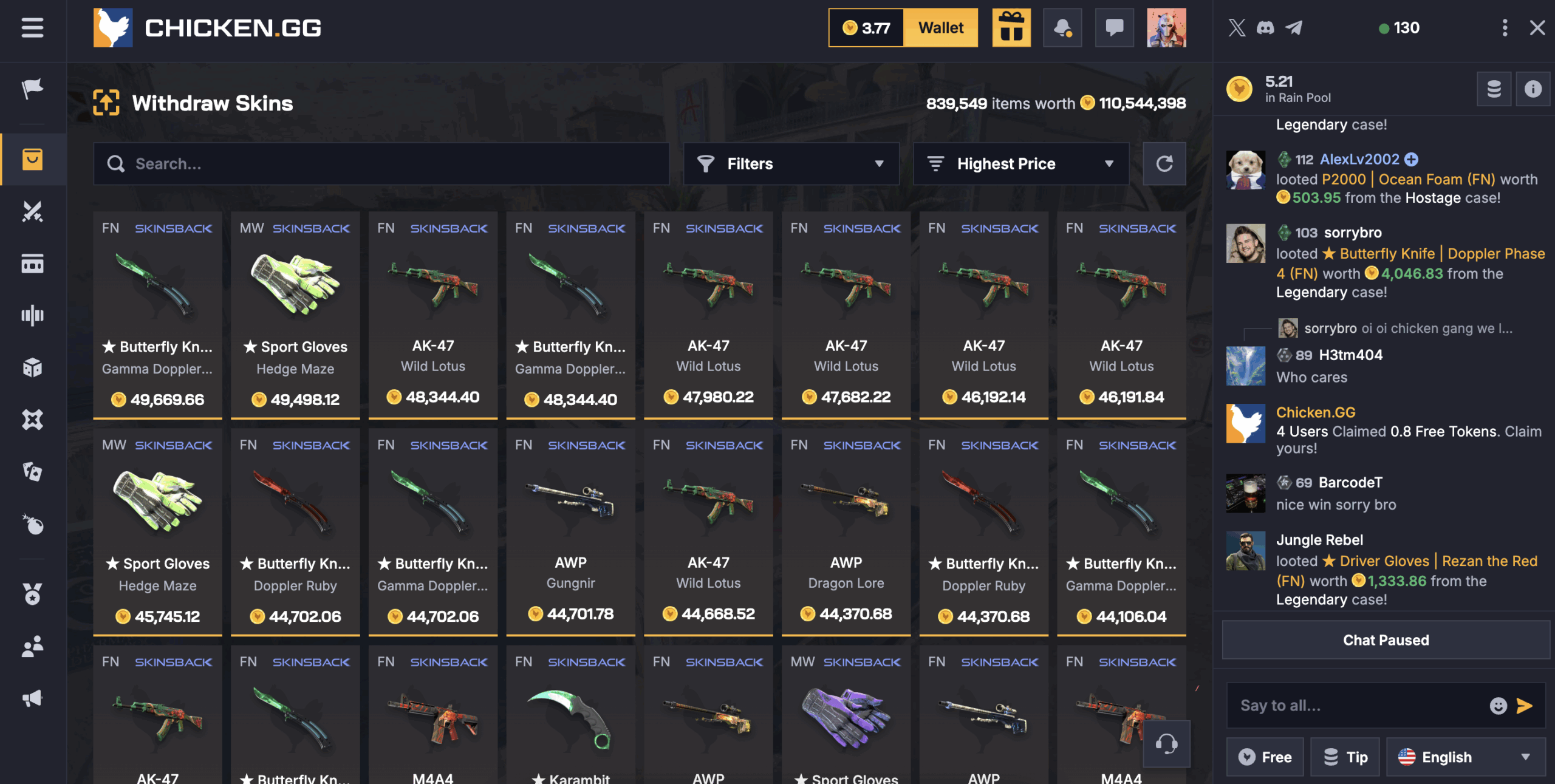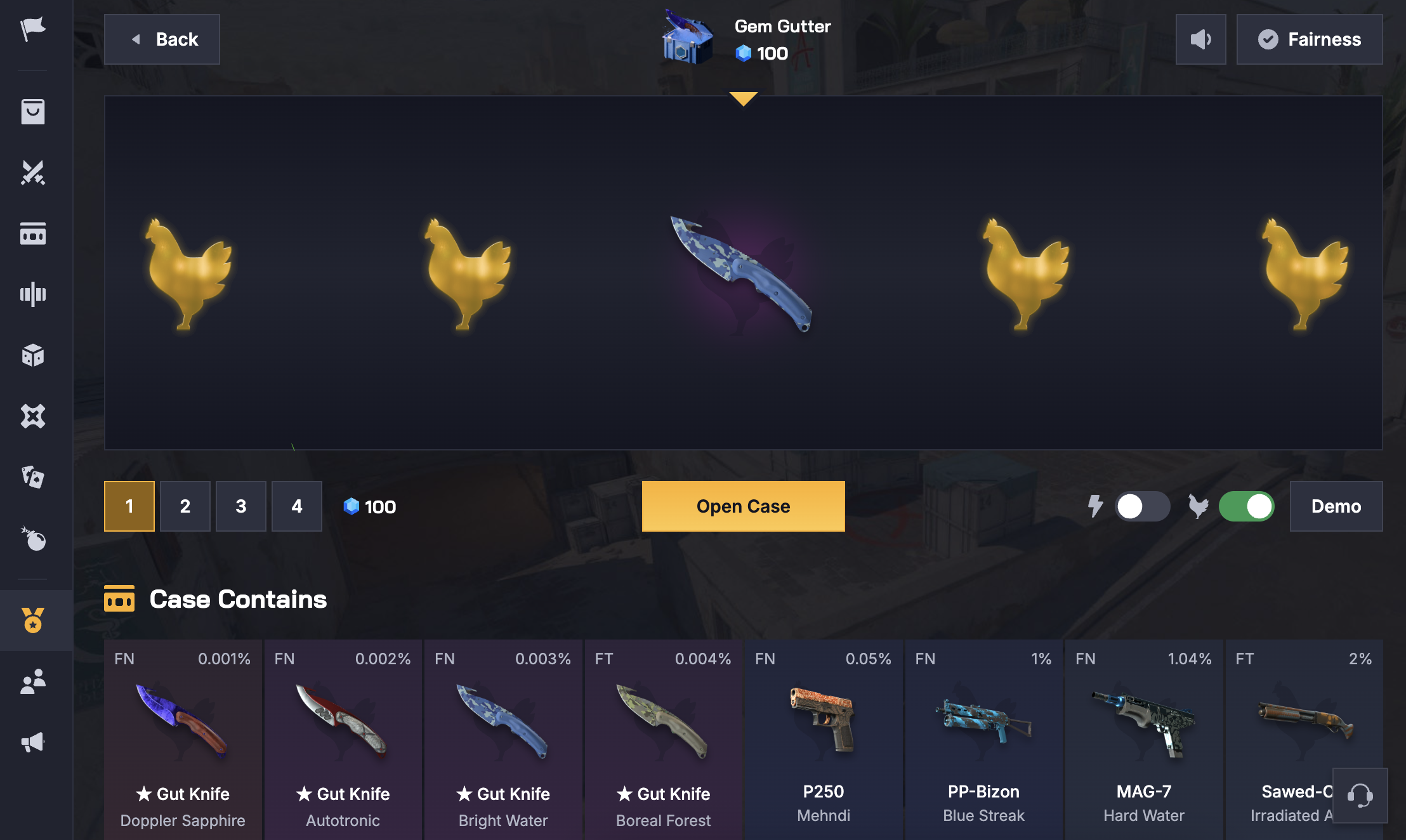 We had no issues navigating or understanding Chicken.gg. Helpful features like case volatility are user-friendly, and we felt comfortable navigating through the website. Other than gems (which only have one purpose which is clearly explained on the gem case section) there are no special tokens, limited or otherwise, that you have to keep track of.