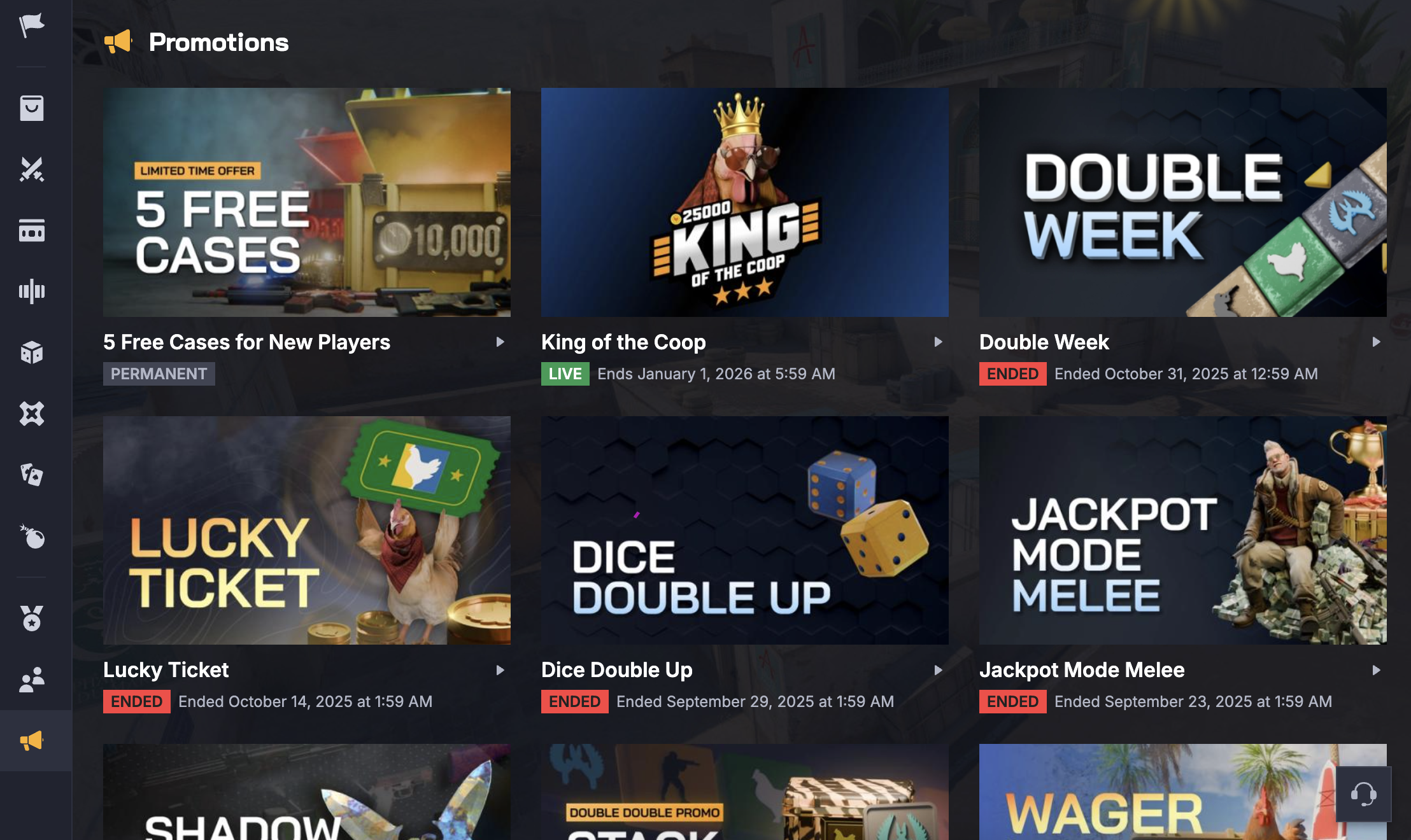 Chicken.gg has a rather basic selection of games (though the case battles are very well fleshed-out and it’s one of the only websites of its kind to offer blackjack) but it does offer a bunch of extra features to keep players entertained. In this section, we’ll go over a couple of the more interesting features.