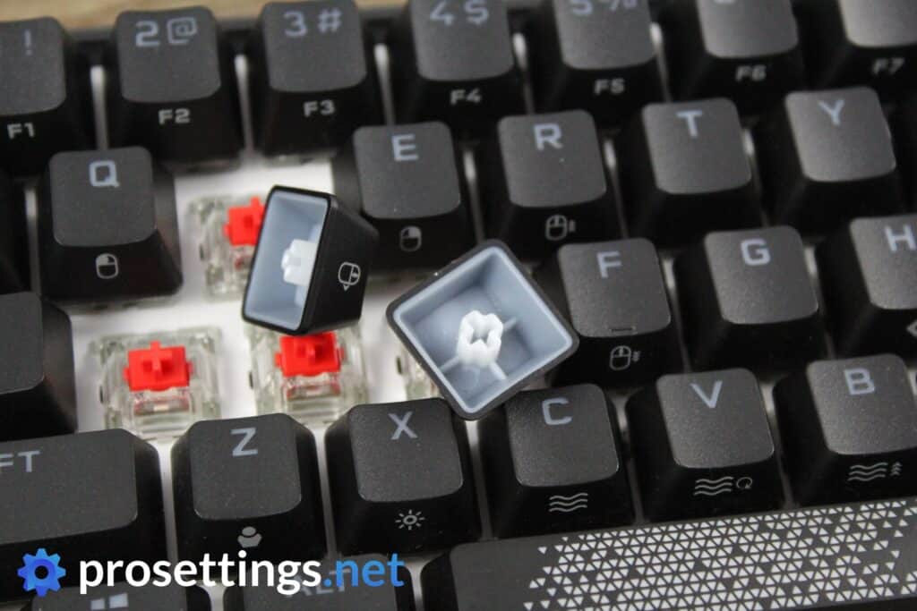 What is somewhat odd is that Corsair have their own switches (in the form of their optical OPX switches) and still decided to use Cherry MX here. I don’t have a big problem with that: despite the fact that Cherry MX switches have gone out of style with many keyboard aficionados they are probably still very loved and without a doubt the most known brand of switches for most people who aren’t all that interested in this scene, so perhaps it’s just for marketing purposes. There is, however, no option to buy the board with OPX switches, so that’s a bit of a head scratcher.