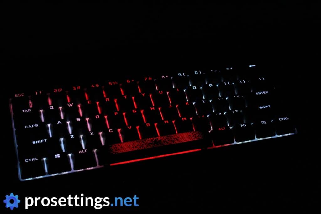 What I appreciate are the stabilizers: they’re actually pretty nice. The rattling is kept to a minimum and for a mass produced keyboard these are absolutely fine. Sadly the same can’t be said for the acoustics and overall typing feeling. It might be because I’ve been using a custom keyboard (an entry level one though) for the past weeks but this K65 RGB Mini is very loud to me, and even though the actual sound that it produces isn’t downright bad (thanks, in part, to the stabilizers) there’s a slightly hollow feeling and sounding touch to this keyboard that I don’t particularly like, even when comparing it to other mass produced boards. These things are very subjective though and it by no means impacts the performance of the board, so make of that what you will.