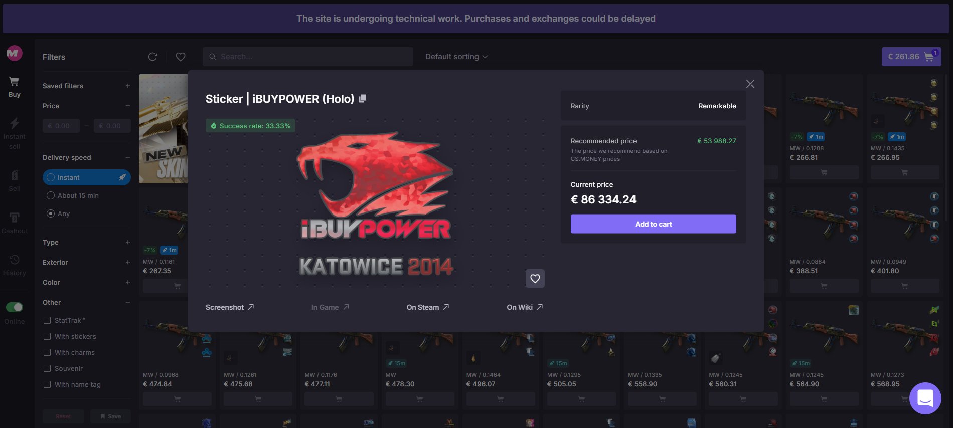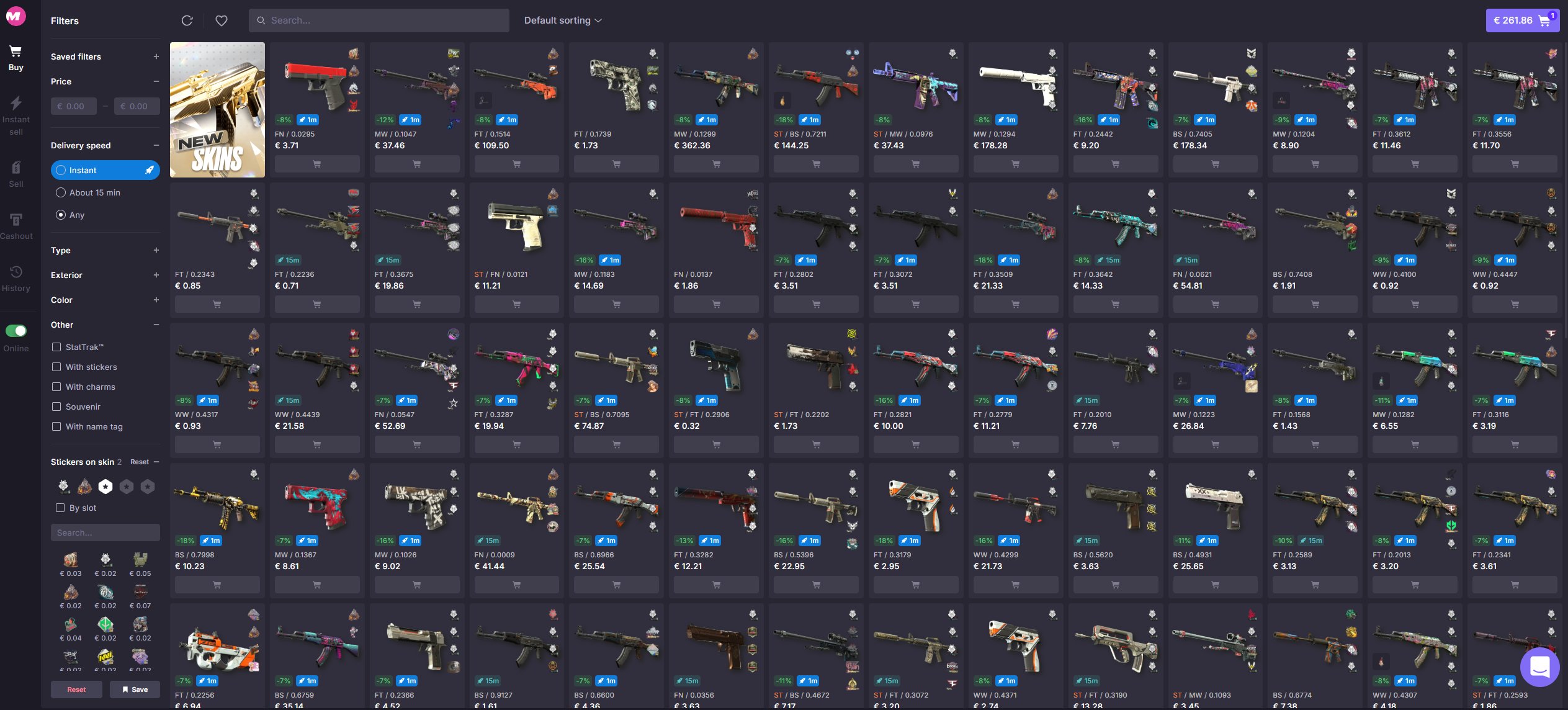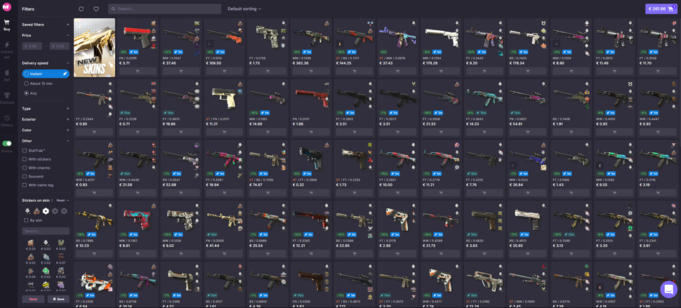 CS.Money has a large selection of skins. We found everything from AWP Dragon Lores worth thousands to AK Slates worth a couple of euros. Furthermore, there’s also a big selection of stickered and special skins. CS.Money has something in store for all kinds of budgets, which is a bonus if you ask us.