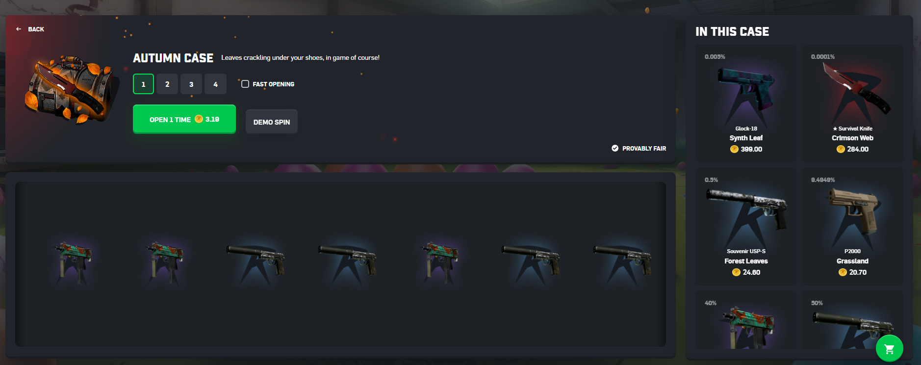 You can get some free cases here and there by using a promo code, but those have incredibly low odds of hitting anything valuable and if you don’t hit a good skin that you can sell for on-site currency you’re out of luck.
