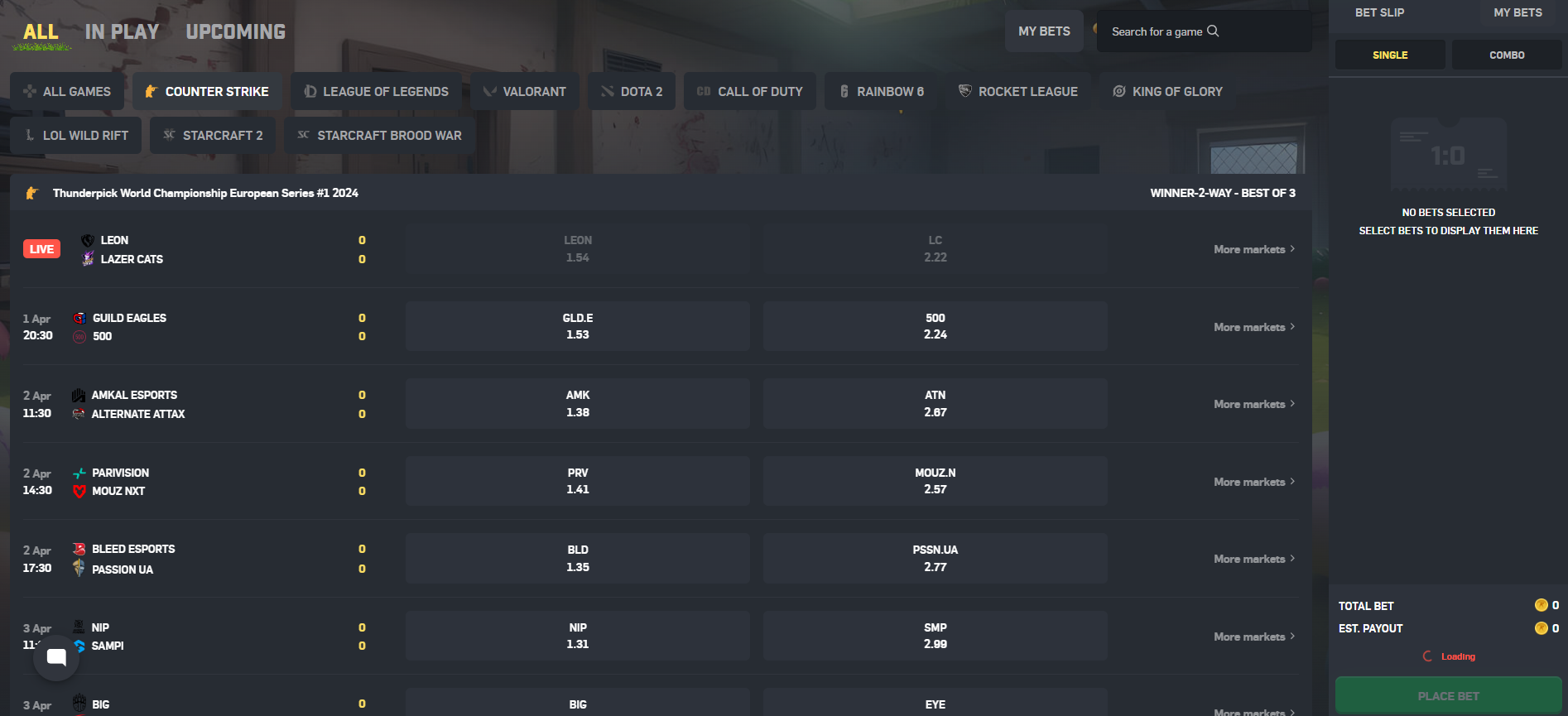 Esports isn’t really a game since it’s basically a betting section. Here, you place bets on real life esports matches. If you bet on a complete underdog and they happen to win, you can get some massive profits, while betting on a clear favorite will only pay out 1.08x or something similar.
