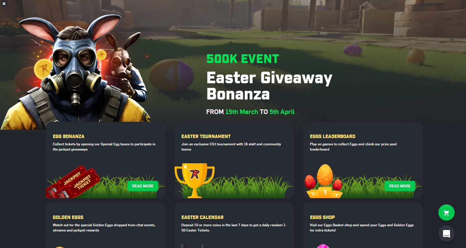 CSGOROLL usually has a special event going on, and these special events are quite substantial. By playing on regular games, you can get special currencies and tickets that you can then spend on cases, event-specific jackpots and raffles, and other limited events.