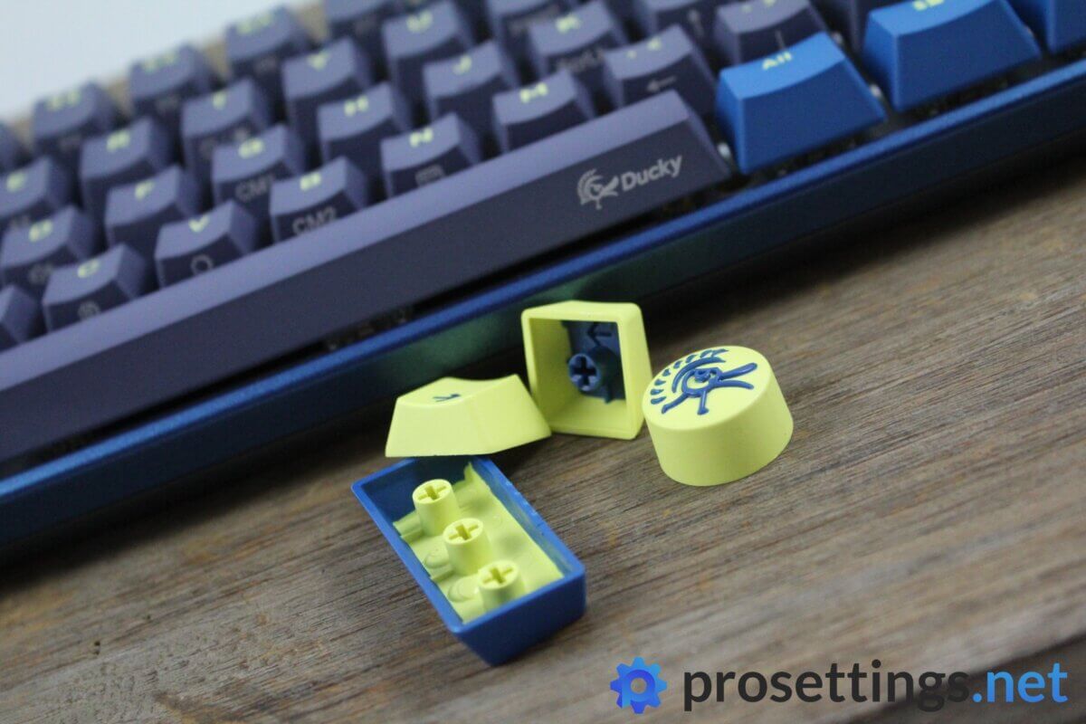 The keycaps, as has been the case with Ducky since I started reviewing their boards, are made of PBT. That’s a material that’s a lot more durable than the thin ABS caps that are commonly found on mass-produced boards, and PBT caps don’t develop a shine nearly as quickly as ABS ones do. These caps are every so slightly textured for extra grip and the legends and colors on them look crisp and clean. I’m very pleased with these keycaps.