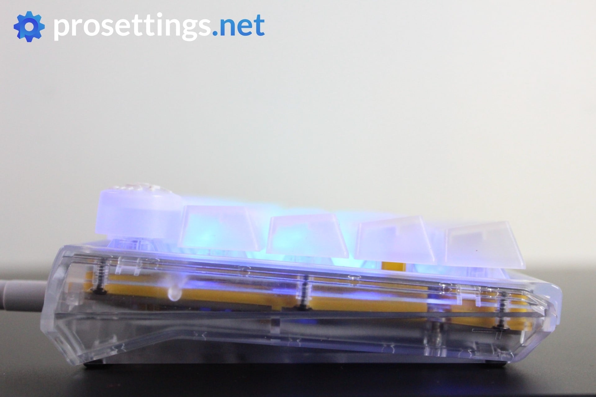 - Transparent case and keycaps make for an impressive lightshow