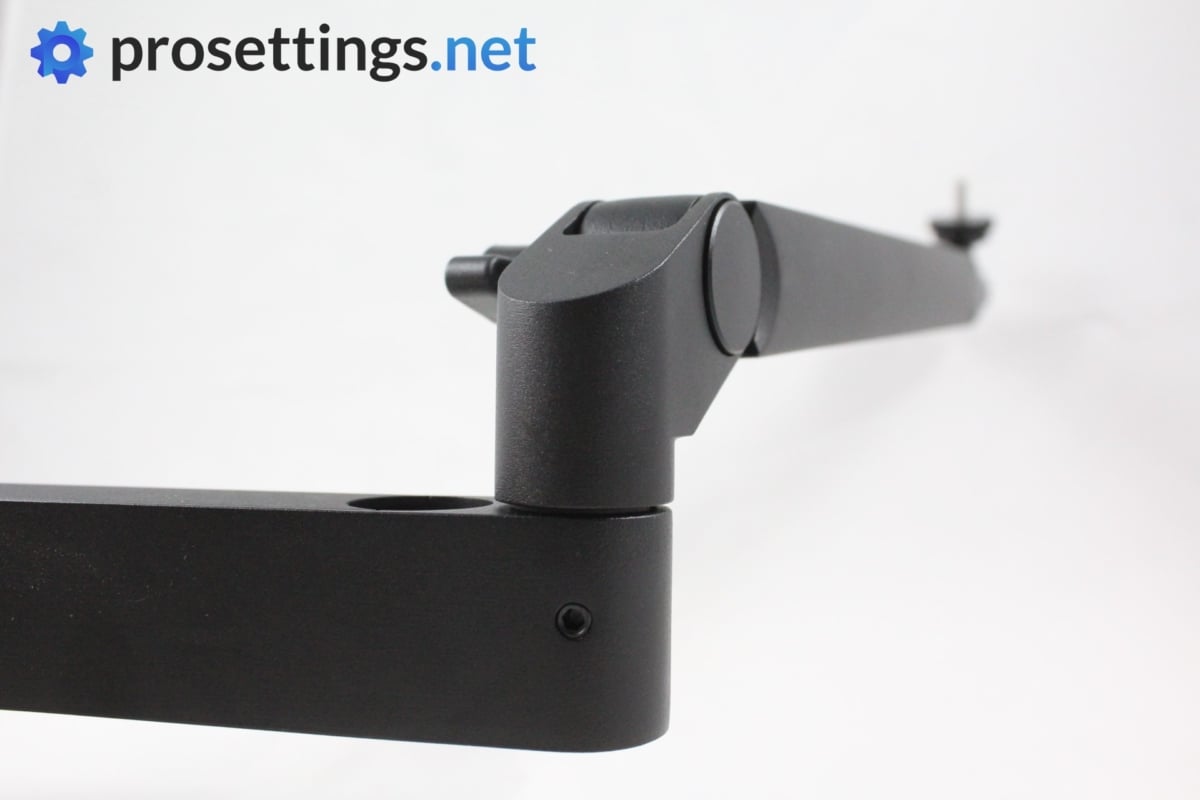 What was a bit surprising to me is how high it gets. Fully assembled, the top arm is 16 centimeters from your desk (measured from the top of the arm) at its flattest configuration. Depending on the height of your mic and how high you want said mic to sit you should add a whole bunch of centimeters to that, meaning that you would have to have your monitor panel rather high up if you want to fold up the mic behind your monitor when not in use. I say this because, depending on where you sit and what size desk you have, mounting it to the side isn’t always an option. The second portion of the arm can be heightened but the ‘base arm’ is always going to float 7 centimeters above your desk. That’s not a lot of room to freely move your mouse arm, for example.