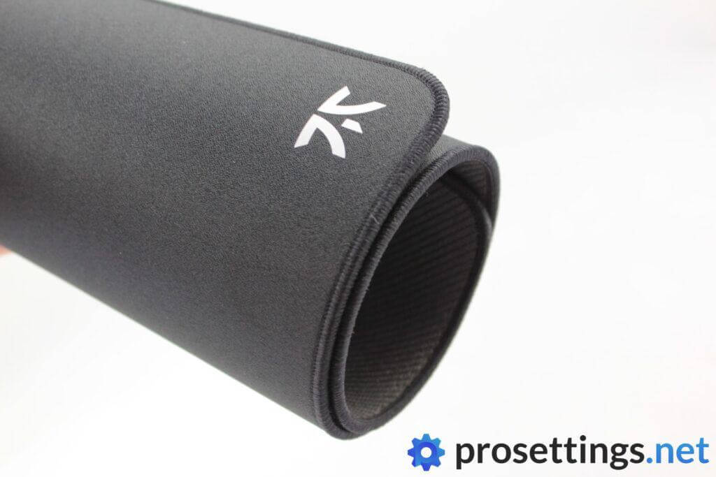 The actual pad itself kept amusing me: this is pretty much a hybrid pad (or at least it’s advertised as such) yet it can be rolled up and the whole thing looks remarkably sleek on top of that. There’s of course not much to mess up with a plain black pad, but aspects such as the pretty much immaculately stitched edges (there are some very minor flaws here and there but nothing noteworthy) and tastefully small logo do give it a premium look. The fact that the small Fnatic logo on the pad is made out of a reflective material might annoy some people for being too flashy but it’s so small that it stays rather unobtrusive and it also won’t influence your glide due to the size.