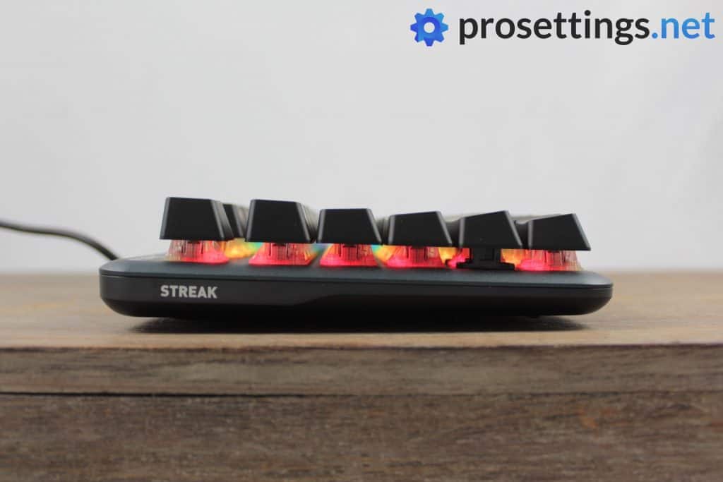The case of the miniSTREAK is plastic, while the top plate is made out of anodized aluminum. This combo makes it very rigid: I couldn’t get the housing to creak when I was applying pressure to it and flexing is kept to an absolute minimum as well. Since this is being marketed as a keyboard for eSports enthusiasts it’s important that it can stand up to the rigors of travel and I’m quite sure that this will be up to the task.