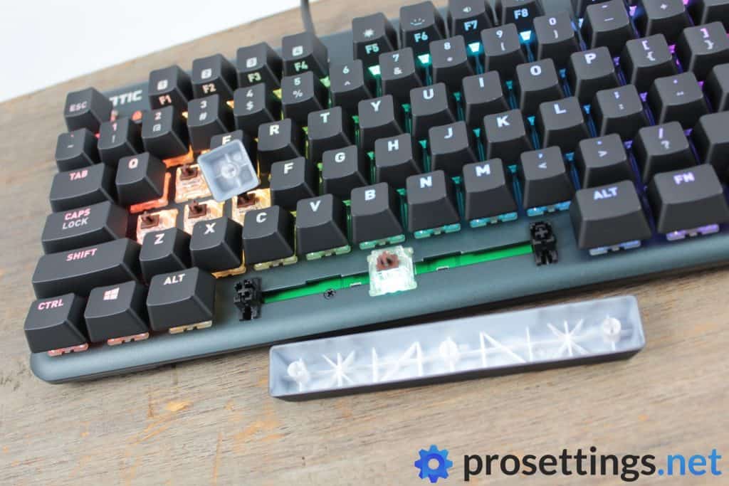 Something else that I immediately noticed and liked is the fact that the switches sit directly atop the backplate of the keyboard. I like this design approach over the one where the switches are recessed inside the casing. This design simply makes the keyboard easier to keep clean, and as someone who can’t stand a filthy keyboard that’s definitely a plus.