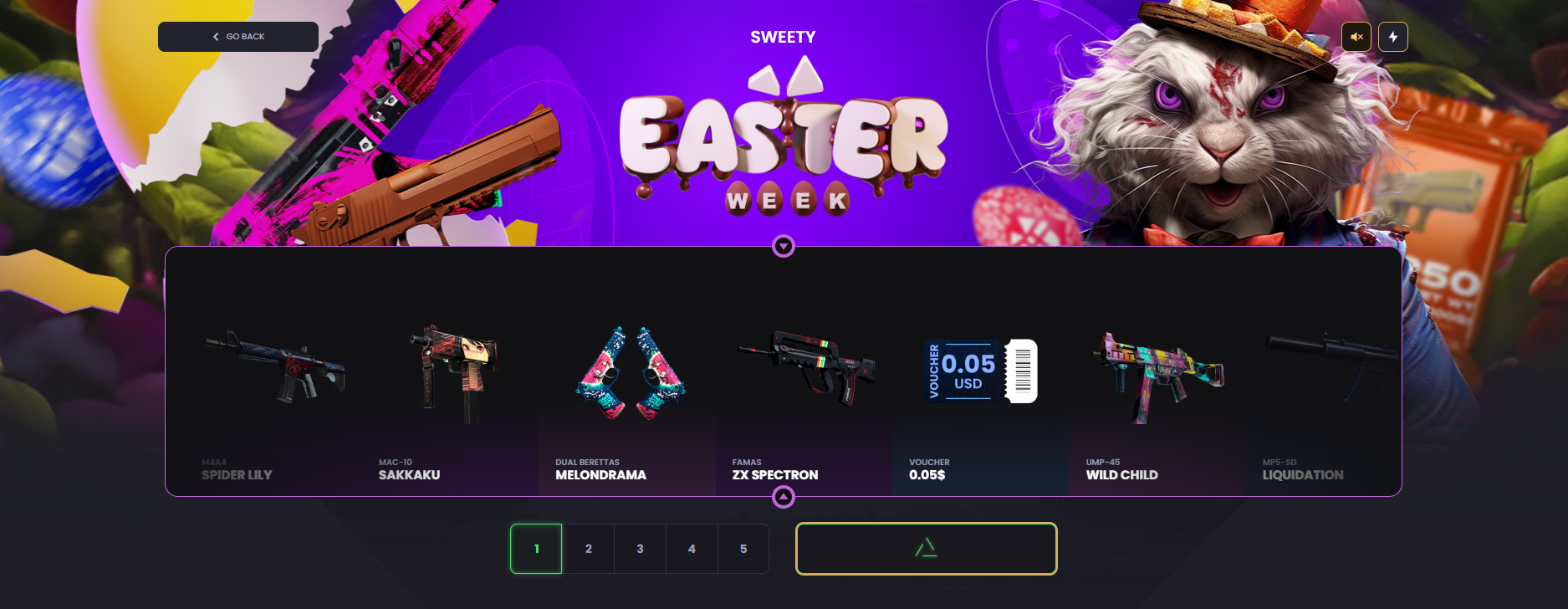 Here, you can select a skin or multiple skins from your (on-site) inventory and swap them for another skin of equal value. This isn’t meant as a game where you can make huge profits; it’s basically a tradebot feature that allows you to swap winnings that you might not like that much to a skin that you’d want to use ingame. This is nice to have, as it allows you to easily swap winnings that you might not want for something that you’ll enjoy using ingame.