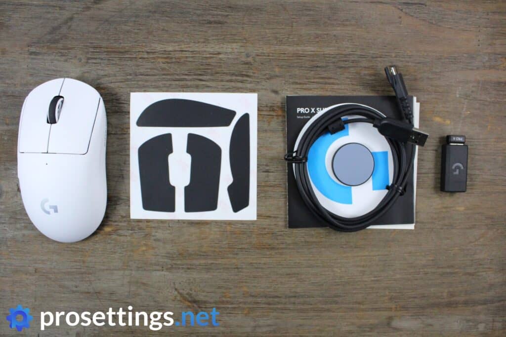 The Superlight comes in the same type of box as the GPW, meaning that I started the unboxing experience thinking that I would know exactly what was inside: the mouse, some documentation, the USB receiver, the charging cable, and a little extender to allow you to put the receiver closer to your mousepad.