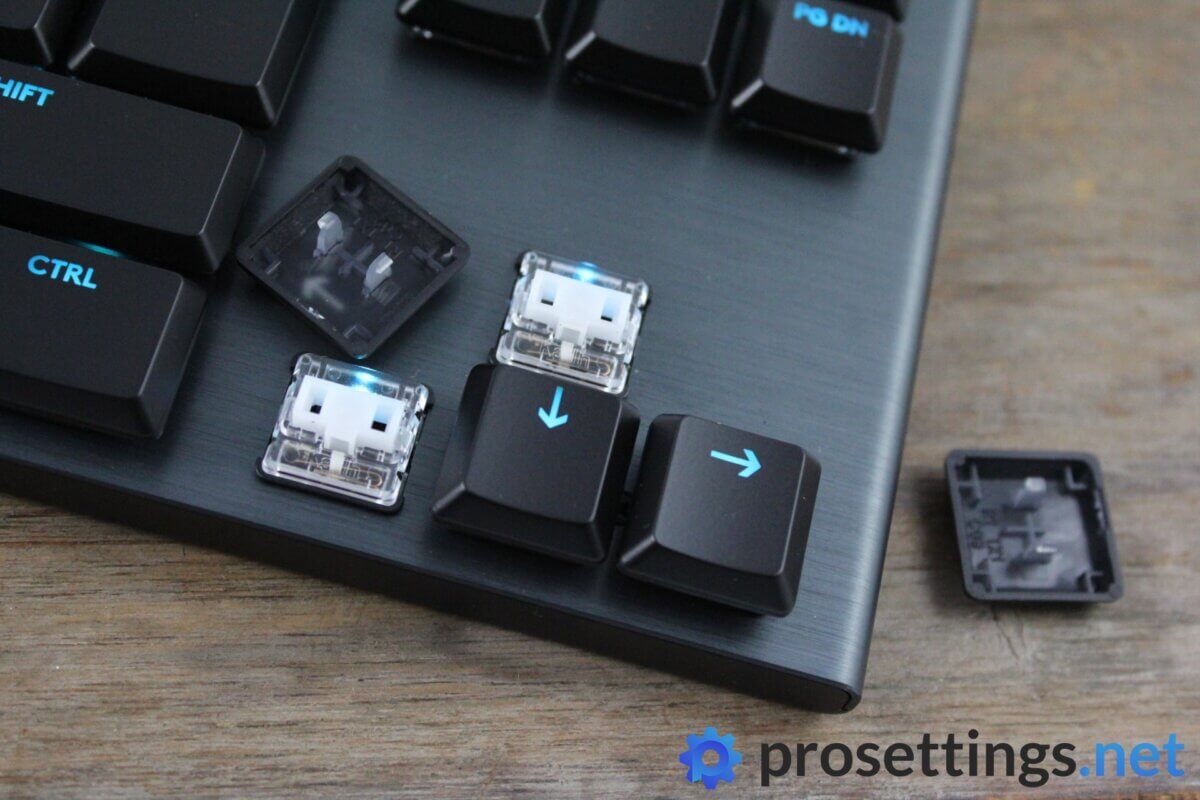 Logitech uses their own switches, and in my testing board I got the GL Clicky switches. From what I can see on the switches themselves, these are based on Kailh low profile switches so if you have any experience with those you might feel at home here but I have to be honest and say that I don’t have any experience with clicky Kailh low profile switches. That’s because not many boards use them, and also because I don’t really like clicky switches.