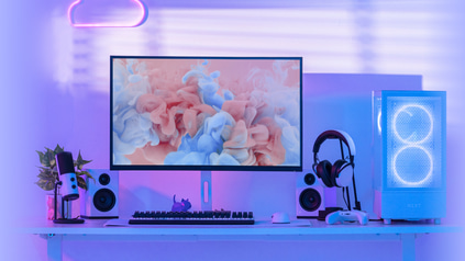 The headset stand isn’t strictly for looks; there’s a pressure-sensitive pad underneath the stand, which toggles between the different audio outputs. If your headset is on the stand, the DAC tells your PC to use speakers. Once you take it off, the audio instantly switches to the headset.
