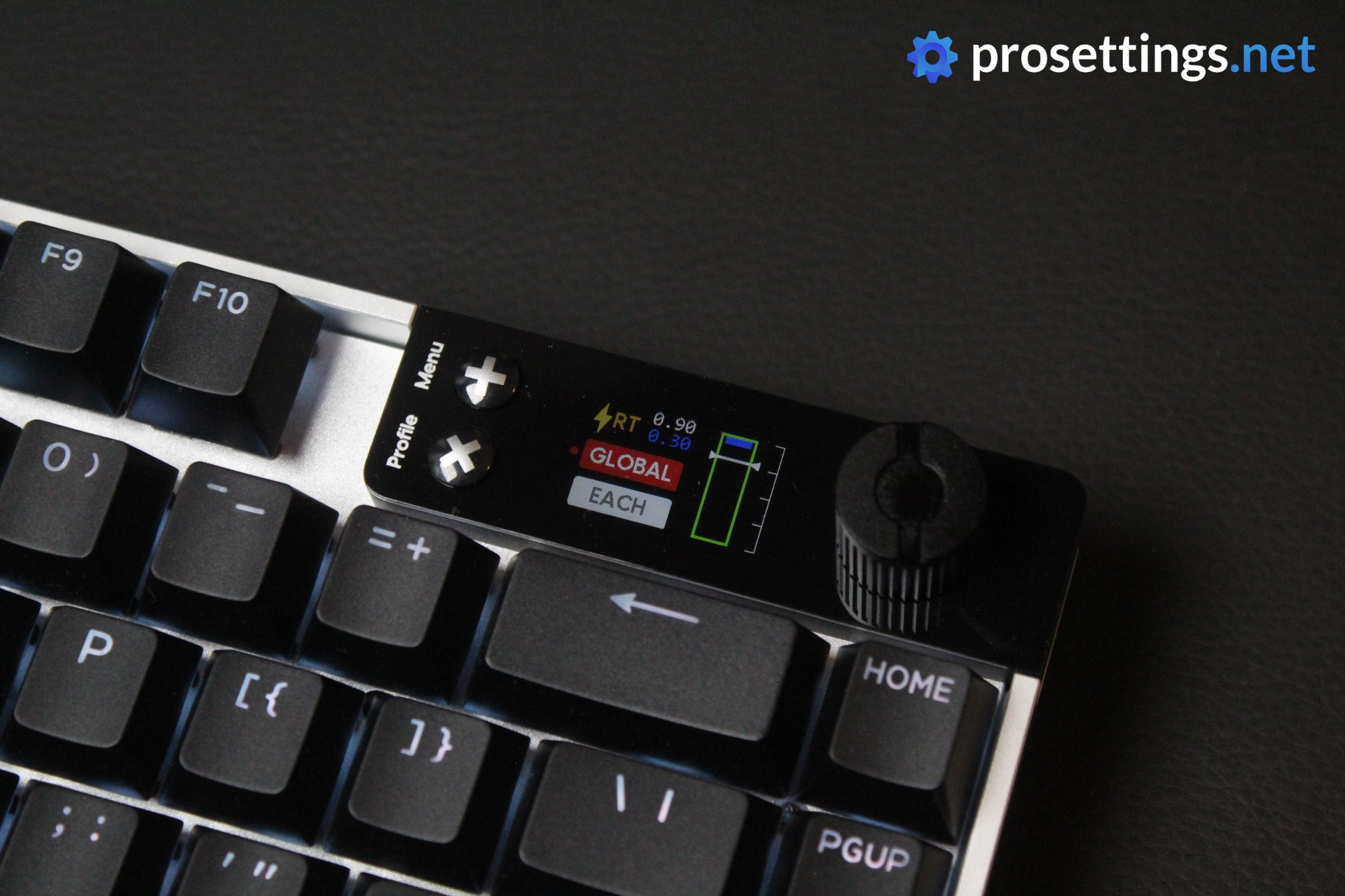 Sadly, it feels like a bit of a missed opportunity. The screen is really handy for adjusting certain settings on the fly (more on that later) but beyond that, there’s not much to it. When you’re not adjusting anything, it just shows the Pulsar eS logo. Why is there no option to have a custom image or gif displayed there? Or, if they don’t want to go that route, why not have a few cool pre-made effects like a WPM counter or a gauge that shows how far a button is being pressed?